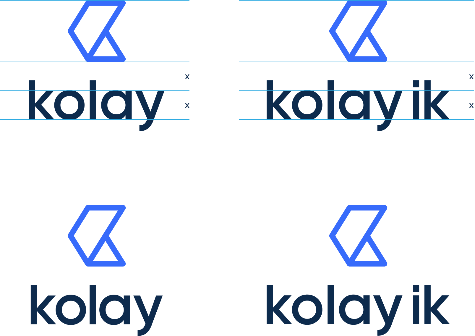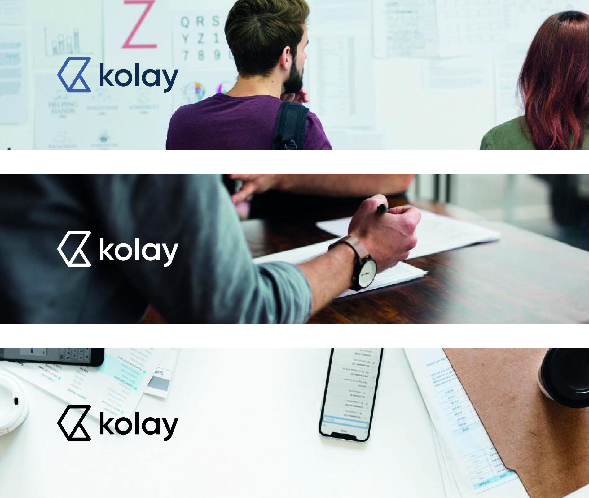 Sembol ve yazının birlikte kullanımından. Kolay logotypeı oluşmaktadır. Logotypeın tercih edilen uygulaması mavi Kolay sembolü ve yanında yer